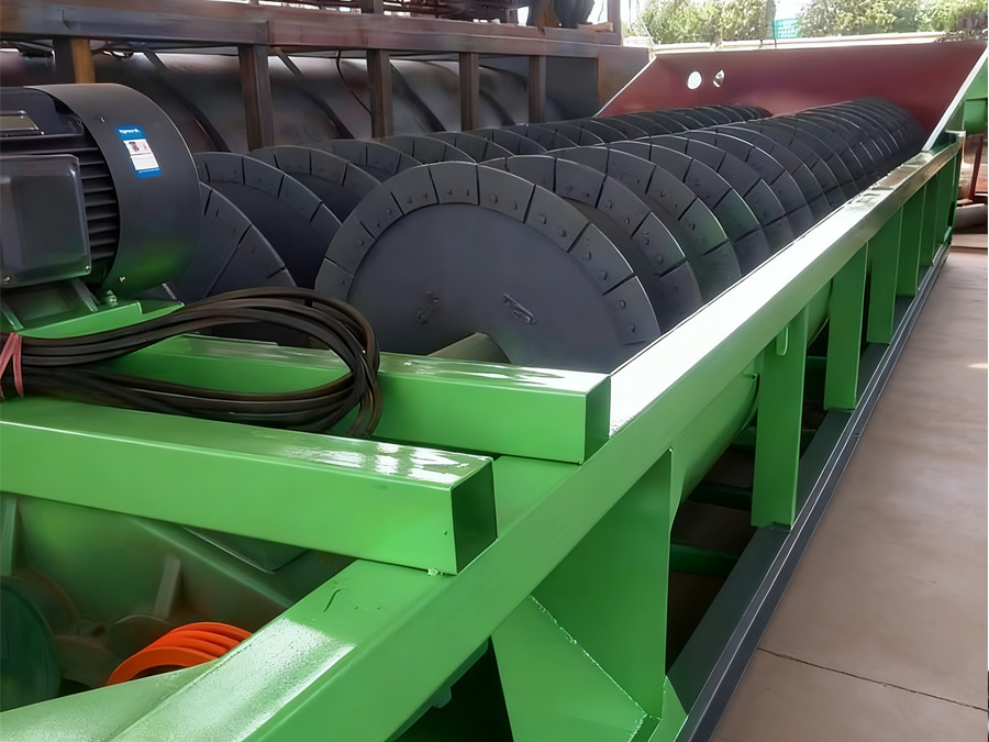 XL螺旋洗(xi)(xi)(xi)砂(sha)(sha)機(ji)(ji)又稱砂(sha)(sha)石洗(xi)(xi)(xi)選機(ji)(ji),分(fen)(fen)為單螺旋洗(xi)(xi)(xi)沙機(ji)(ji)和雙(shuang)螺旋洗(xi)(xi)(xi)沙機(ji)(ji),是(shi)(shi)我公司(si)采用優良技術和結(jie)合(he)國內砂(sha)(sha)石行(xing)業(ye)實際(ji)情況研制(zhi)的(de)(de)洗(xi)(xi)(xi)砂(sha)(sha)設備。具(ju)有結(jie)構合(he)理、洗(xi)(xi)(xi)凈度(du)高(gao)、處理量大(da)、能耗低(di)(di)的(de)(de)特點。它可以將(jiang)制(zhi)砂(sha)(sha)機(ji)(ji)制(zhi)出的(de)(de)混合(he)砂(sha)(sha) 洗(xi)(xi)(xi)去微量的(de)(de)石粉(fen)和雜(za)質,從而提高(gao)砂(sha)(sha)子(zi)的(de)(de)品質,洗(xi)(xi)(xi)砂(sha)(sha)過程中砂(sha)(sha)子(zi)的(de)(de)流失(shi)少,尤其是(shi)(shi)其傳動部(bu)分(fen)(fen)均與水和受水物料隔離,故障(zhang)率大(da)大(da)低(di)(di)于目前常(chang)用的(de)(de)洗(xi)(xi)(xi)沙機(ji)(ji),深受廣大(da)用戶的(de)(de)歡迎。